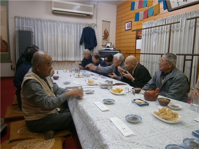 法話、読経後、皆さんで薬石(夕飯:おそば)&茶話会をしながら懇談しました。
