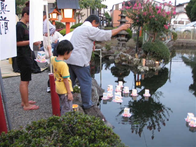 18時より、お寺近くの弁天池にて、灯ろう流し。
