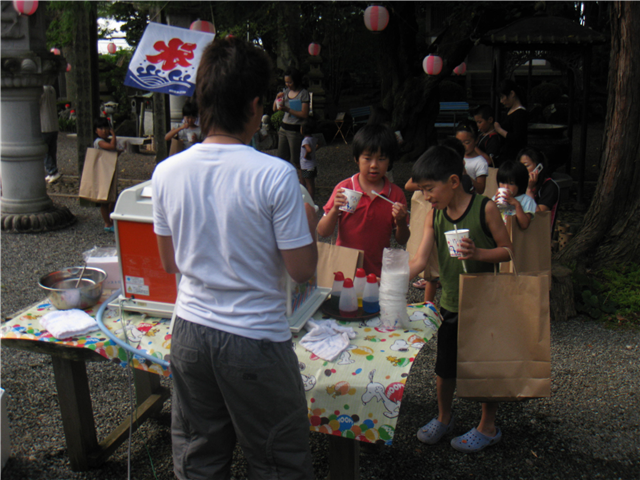 そして、子どもたちのお楽しみのお土産とかき氷をもらいました。