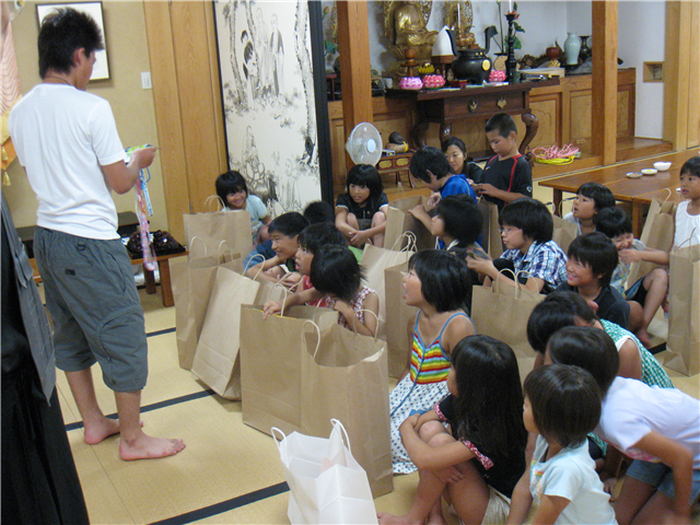 禅のつどい(平成23年8月7日)-お土産をもらう子どもたち-