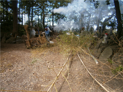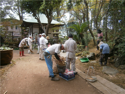 これは毎年、年2回夏と冬に、お檀家さんや門前町のみなさん、にぎやかしの会の方々が集まり、大泉寺境内地の掃除をする奉仕作業です。