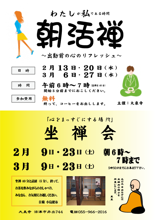 - 平成25年2月と3月の朝活禅&坐禅会 from 大泉寺コム