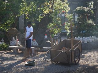 大泉寺は木に囲まれたお寺ですので、この時期は枯葉の掃除が大変ですが、こうして家族みんなで掃除ができる「ありがたさ」は、秋の心の実りでもあります。