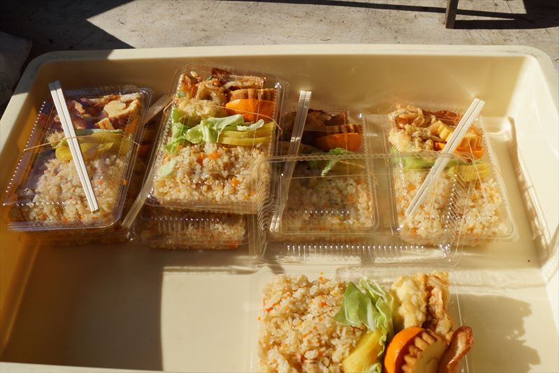 お昼には大泉寺特製弁当(味付けご飯、北海道産ホタテのかき揚げなど)と味噌汁をみなさんでいただきました。