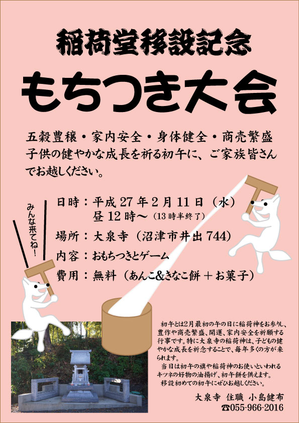 - 「稲荷堂移設記念 もちつき大会」のお知らせ from 大泉寺コム