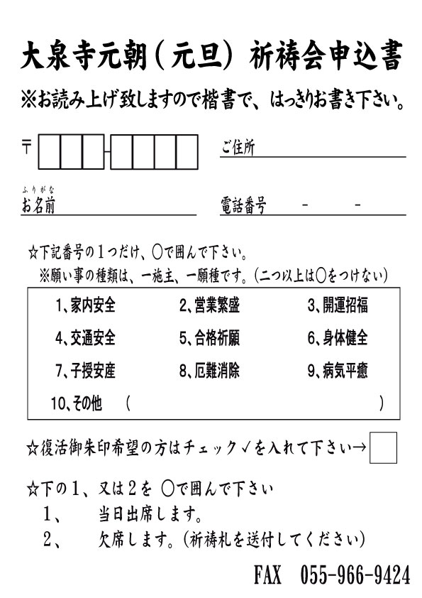令和8年 元朝祈祷会のご案内